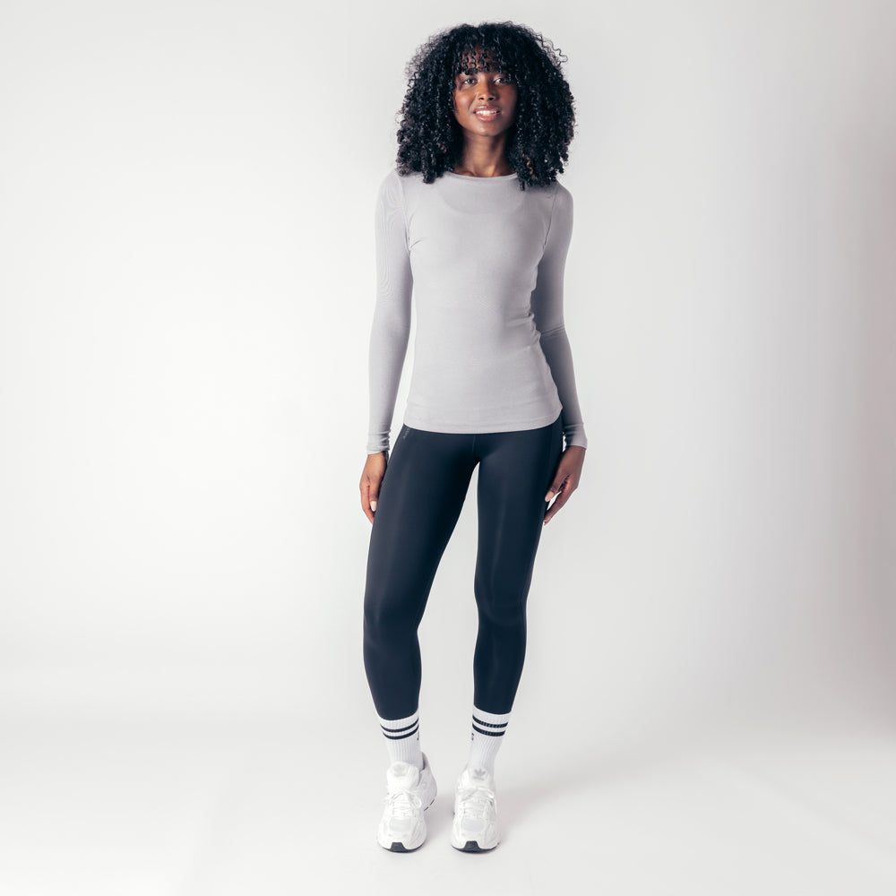 This long-sleeved workout tee is meticulously crafted from natural Bamboo fibres, a fabric renowned for its exceptional softness, breathability, and absorbency. Designed with the modern athlete in mind, this tee offers unparalleled comfort and performance for various fitness activities. The bamboo fabric feels incredibly soft against the skin, providing a luxurious and comfortable fit. It's exceptional breathability allows air to circulate, keeping you cool and dry even during intense workouts. Boasting 360-degree stretch, allowing it to adapt to your every move, whether you're performing dynamic stretches, intense cardio, or weightlifting exercises, this top moves with you, ensuring maximum comfort and freedom of movement. If you're looking for a tee that combines comfort, performance, and style, look no further, this is the perfect choice for